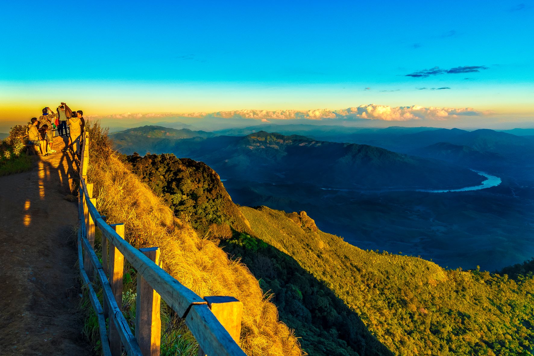 It is 25 kilometres from Phu Chi Fa and is a viewpoint of Thai-Lao scenery and year-round sea of mist. During December-January, there are cherry blossoms and crescent flowers in full bloom. It is also the location of Chinese Haw, Hmong and Yao villages. At present, the villagers are engaged in agriculture by growing temperate crops, e.g., plums, peaches, apples, and tea.
