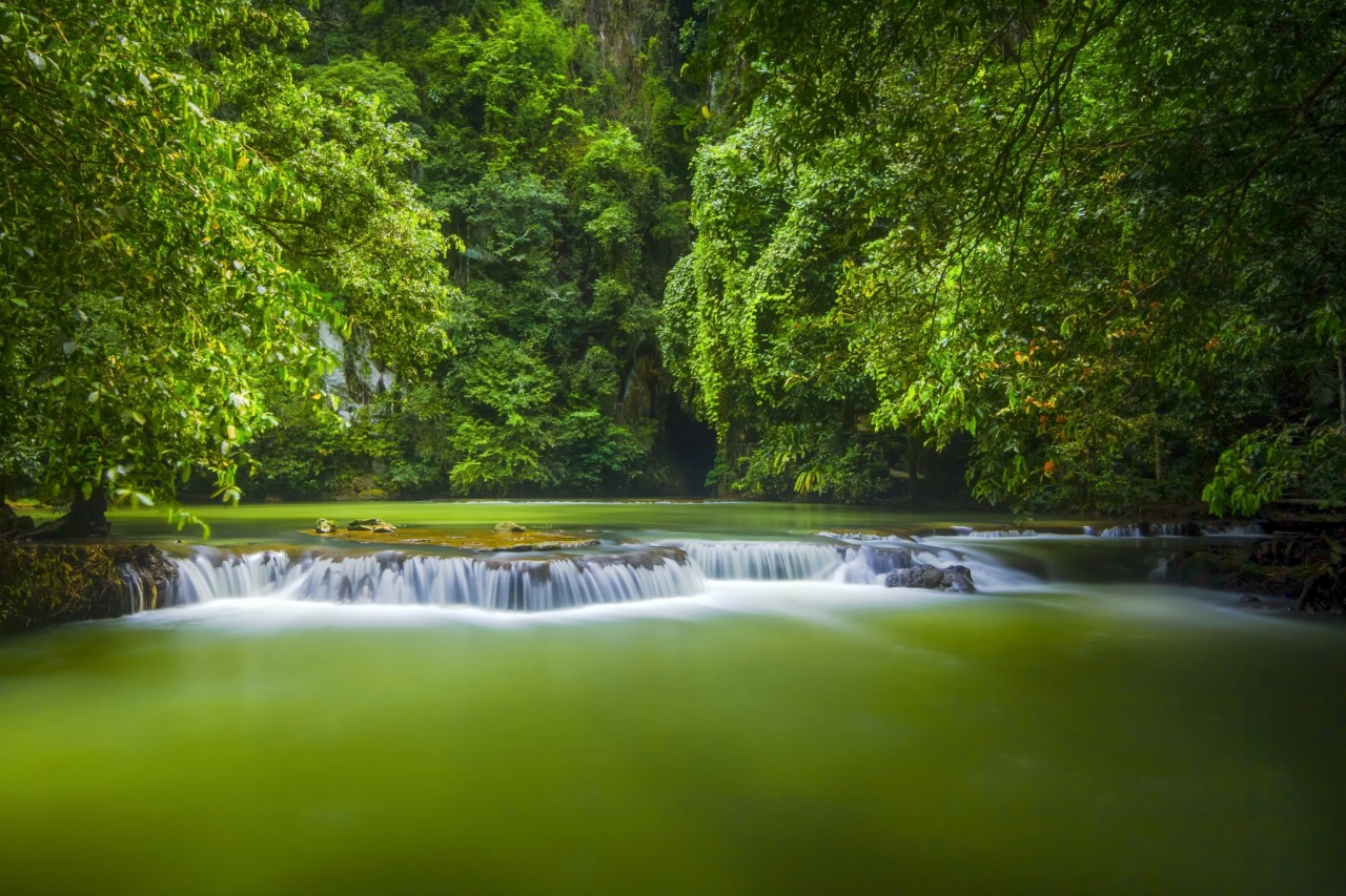 Than Bok Khorani National Park. The landscape is dominated by a series of limestone mountains, evergreen forests, mangrove forests, and numerous islands.